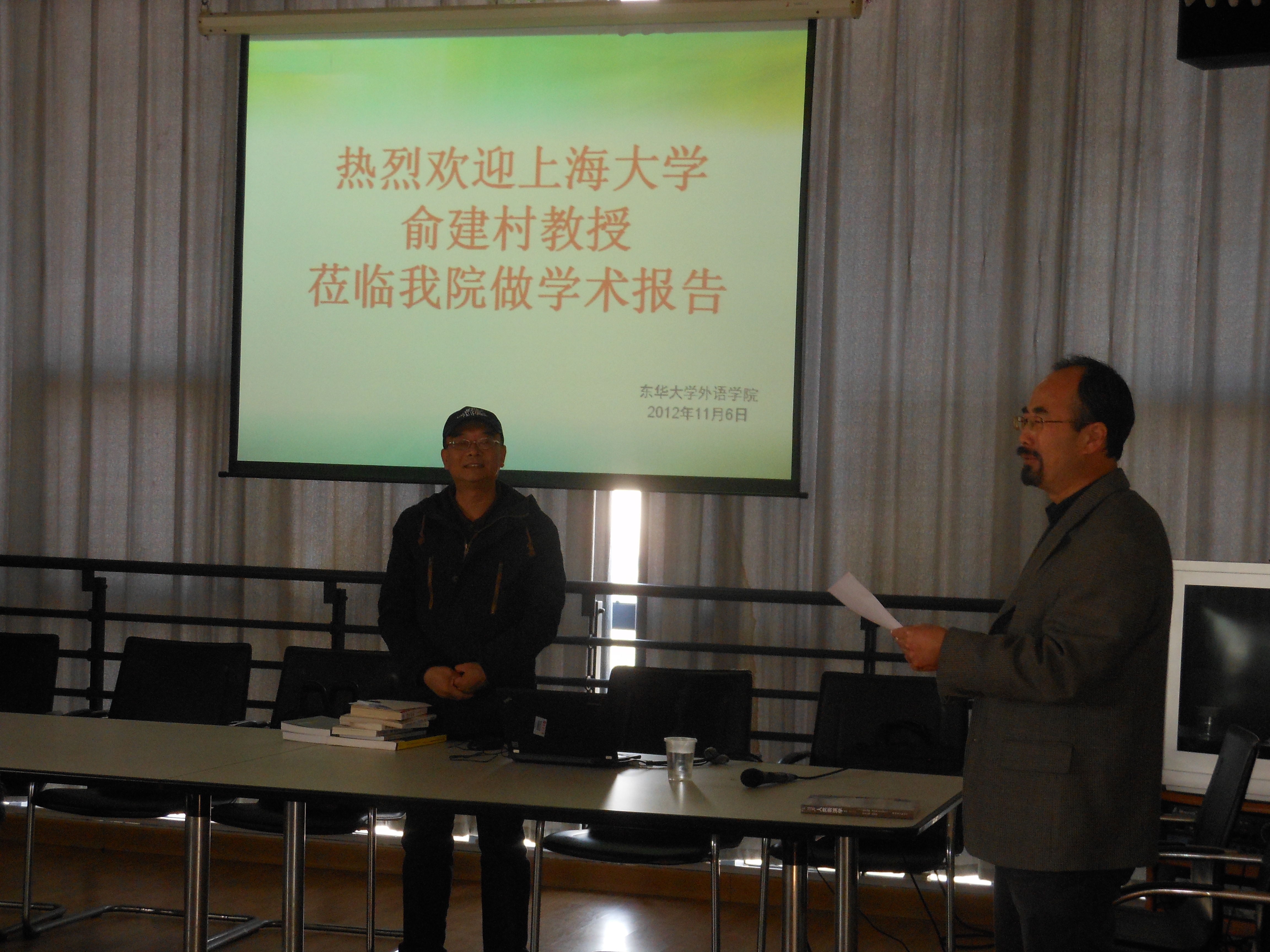 11月6日下午2点30分,上海大学俞建村教授莅临,为师生做了题为:“社会表演——文学研究的新视点”的学术报告。