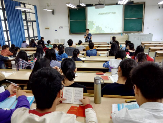 丁霞萍老师以一名心系学生的老教授身份与现场观众积极互动,交流分享入党动机,解读她对大学教育之价值与意义的理解,呼吁广大青年学生“多读书、不断健全完善自我、发挥典范作用”,多做“无用”的练习,从而不断提高自己的判断力和心思缜密度。丁老师也结合个人所感所悟向在场学生介绍了诸多名人经典书籍、优秀演讲,引导学生适应新环境、融入新社会。丁老师也与年轻的学生分享了历届学长学姐的典范事例,以朋辈教育为青年指引方向:要促进生理、心理、社会的系统整合发展,态度决定高度,细节决定成败,一切基于价值观;剖析了马加爵、林森浩等案件出现的原因,以反面事例警醒青年学生:要把自己培养成对人民有用的人,喜欢别人也被别人喜欢的有用人才。“学政治,明事理,爱智慧”的主题深深印刻在每一位同学心底,无形却比任何实物更具震撼力。