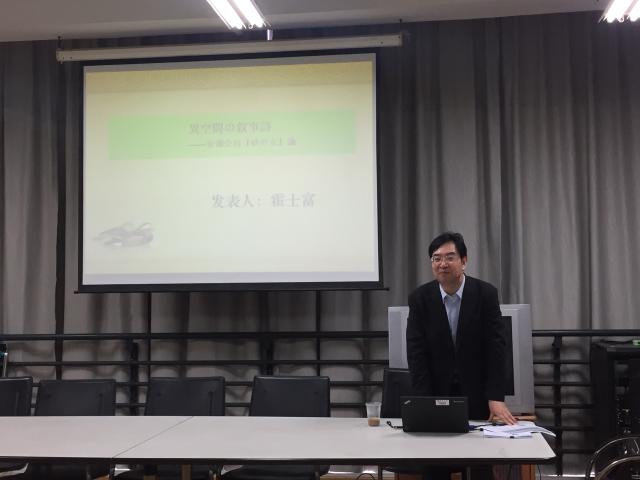 霍士富教授研究方向为日本近现代文学,主要进行大江健三郎、村上春树和安倍公房;鲁迅与大江健三郎的文学比较等研究,在日发表论文5篇,在CSSCI及权威期刊上发表论文7篇,曾在《外国文学评论》,《外国文学》等刊物发表论文30余篇,拥有极高的学术研究水平。本次学术讲座,霍士富教授以安部公房的《砂女》为切入点,通过具体分析自身的学术研究成果,提出“异空间”这一崭新的学术研究视角。并通过生动形象的举例,由浅入深,细致地说明了文学作品研究的方法,使在场师生受益匪浅。