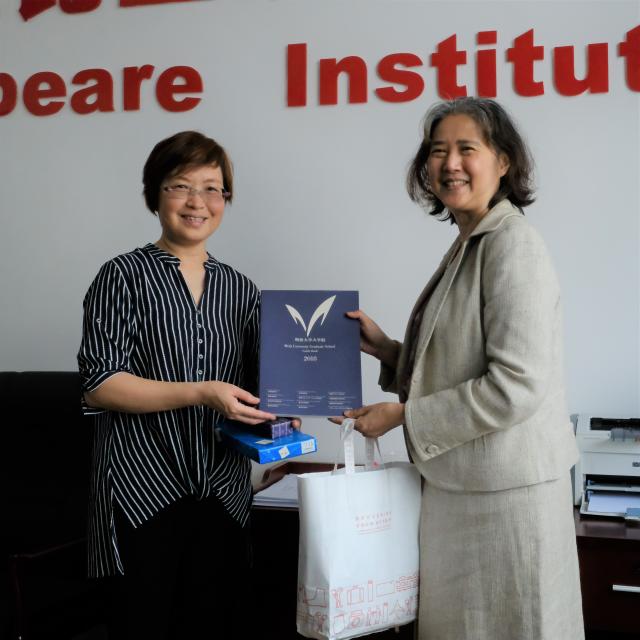 2017年9月12日开学伊始,明治大学研究院教养设计研究科山岸智子教授、川野明正教授一行到访威廉希尔体育网。威廉希尔体育网院长赵晓临老师、院长助理兼日语系主任赵萍老师及日语系副主任王蕾老师出席接待。