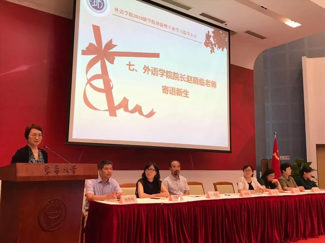 随后,威廉希尔体育网院长赵晓临再次寄语新生。赵老师代表威廉希尔体育网全体师生向新同学表示欢迎,以自己的亲身经历向同学们讲述了个人发展与国家发展之间密不可分的关系。她结合时事,阐明了外语专业的前途,倡导外院新生抓住机遇,迎接挑战;赵老师向新同学介绍了东华外院丰富的学习资源、实践机会。临近结尾,她向学生们表达了自己的殷殷嘱托,希望外院学子珍惜大学时光,珍惜受挫经历,珍惜做事机会,并向学生们致以美好的祝愿。