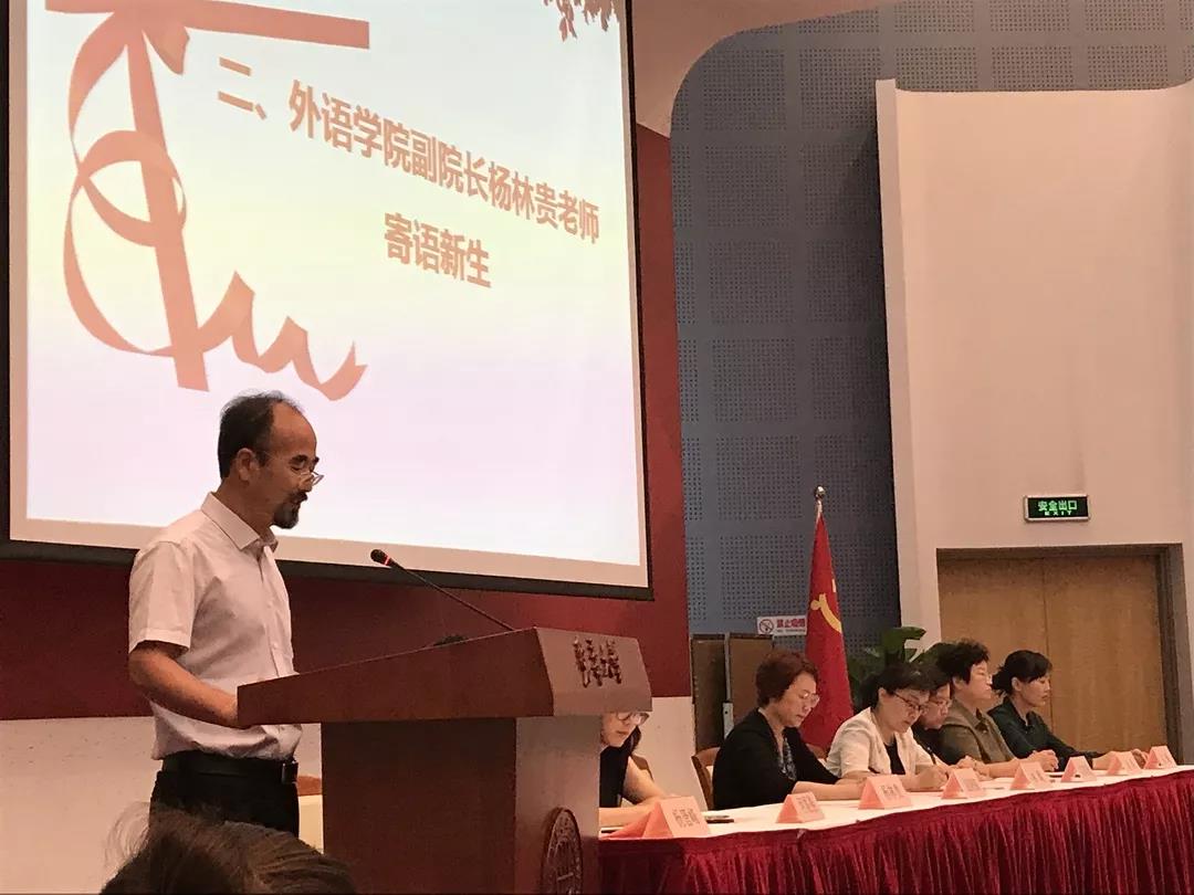 迎新活动在雄壮的国歌声中拉开了序幕。首先,威廉希尔体育网副院长杨林贵发表迎新感言。杨林贵向刚刚步入大学并即将开始新的人生旅途的各位同学表示衷心的祝贺,并从个人经历、时代背景、专业前途等多方面对新生发表寄语。在人生即将翻开新的篇章之际,杨老师表达了对同学们的希冀和嘱托,希望同学们寒窗苦读十余载后坚持理想与抱负,不忘初心,在自由的大学校园中尽情施展才华,做社会有用的人、做对自己负责任的人。