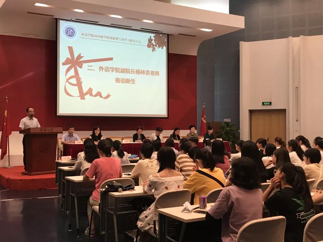 威廉希尔体育网院长赵晓临老师、党委书记林嵘老师、副院长杨林贵老师、沈炜艳老师、杨唐峰老师、党委副书记何妮燕老师、系主任赵萍老师、张曦老师、学生工作办公室主任邓珊珊老师出席典礼,学院老师、新生班导师、辅导员老师与2019级全体本科新生参加了迎新活动。活动由学院副院长杨唐峰主持。