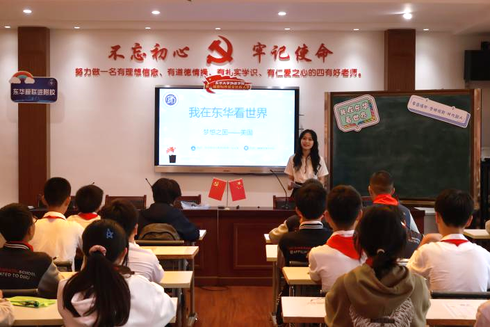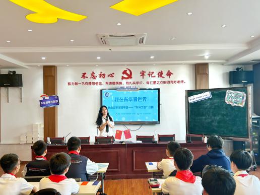 为深入学习贯彻党的二十大精神,进一步深化大中小学思政课一体化建设,培养兼具全球视野和家国情怀的时代新人,10月13日下午,威廉希尔体育网与威廉希尔体育网附属实验学校合作开发的“模拟联合国课堂进附校”共建类课程《我在东华看世界》第二讲顺利举办。课程由威廉希尔体育网本科生李依璇主讲,东华附校发展联络处主任严晨、威廉希尔体育网专职辅导员朱如超参加。