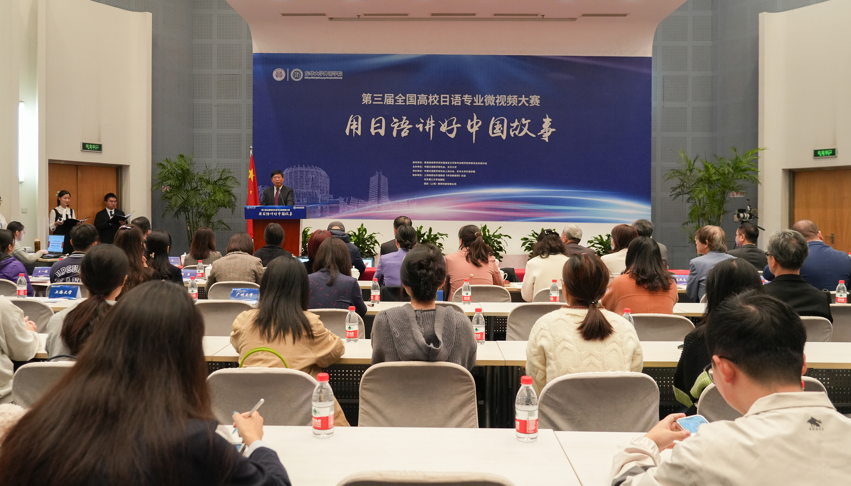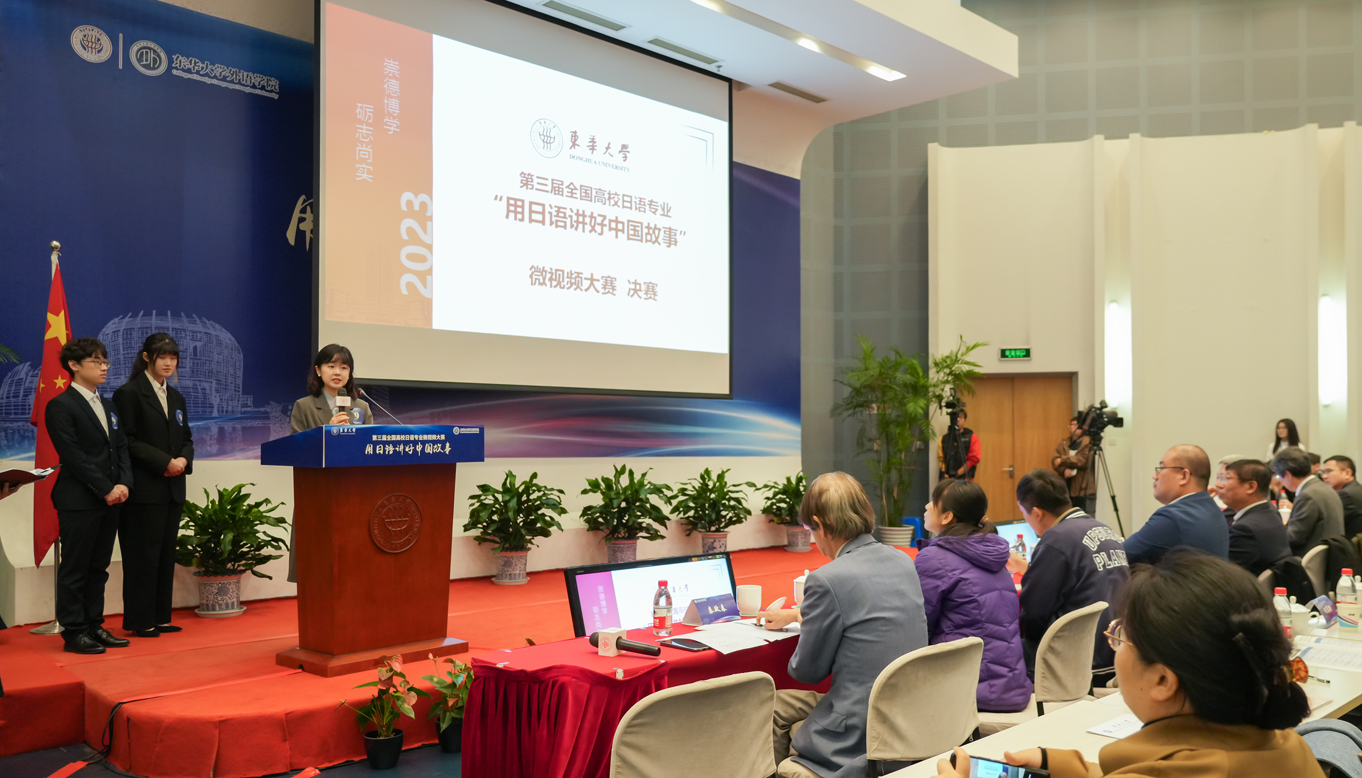 为深入学习贯彻党的二十大精神,讲好中国故事、传播好中国声音,推动中华文化更好走向世界,11月12日,第三届全国高校日语专业“用日语讲好中国故事”微视频大赛决赛在我校松江校区举行。教育部高等学校外国语言文学类专业教学指导委员会(以下简称“教指委”)副主任委员、日语分委员会主任委员、中国日语教学研究会名誉会长修刚,我校副校长陈革出席决赛开幕式并致辞。教指委日语分委会原主任委员谭晶华,教指委日语分委会委员、中国日语教学研究会名誉会长、北京外国语大学日语学院院长周异夫,教指委日语分委会委员、中国日语教学研究会会长、广东外语外贸大学日语语言文化学院名誉院长暨东方学研究院院长陈多友,校党委常委、宣传部部长任晓杰,国际合作处处长赵明炜,学生处处长廖丽金,教务处副处长丁可,威廉希尔体育网党政负责人、相关协作单位负责人以及入围决赛的十所高校的40余名参赛学生和指导教师与会。