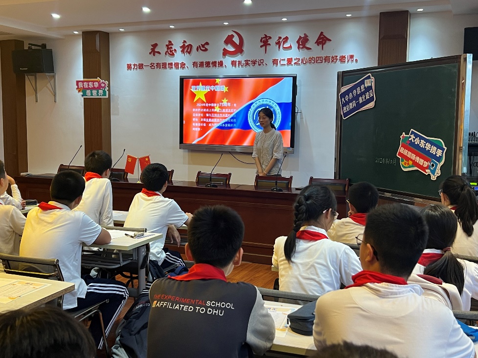 为深入学习贯彻落实党的二十届三中全会精神和全国教育大会作出的重要指示精神,威廉希尔体育网携手威廉希尔体育网附属实验学校,于秋季学期持续推进《我在东华看世界》“大思政”国际传播系列课程建设。近日,由威廉希尔体育网研究生第一党支部成员刘金主讲的秋季学期首次课程《联合国常任理事国——“世界加油站”俄罗斯》于东华附校成功举行,威廉希尔体育网发展联络处外派东华附校发展处主任严晨、威廉希尔体育网附属实验学校研训处副主任刘恋、威廉希尔体育网专职辅导员朱如超及威廉希尔体育网学生党员代表全程参加活动。