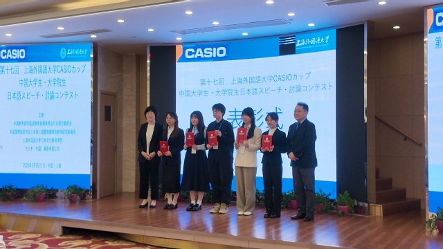 5月25日,第十七届“卡西欧杯”中国日语专业本科生·研究生演讲辩论大赛决赛在上海外国语大学举行。决赛以上午即兴演讲、下午组队辩论的方式进行,来自23所高校的24名入围选手展开了激烈角逐。最终,日语笔译专业2024级硕士研究生肖莹莹同学凭借扎实的日语功底和出色的思辨能力脱颖而出,荣获全国二等奖。日语系吴沁哲老师和羽毛友里惠老师荣获优秀指导教师奖。